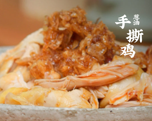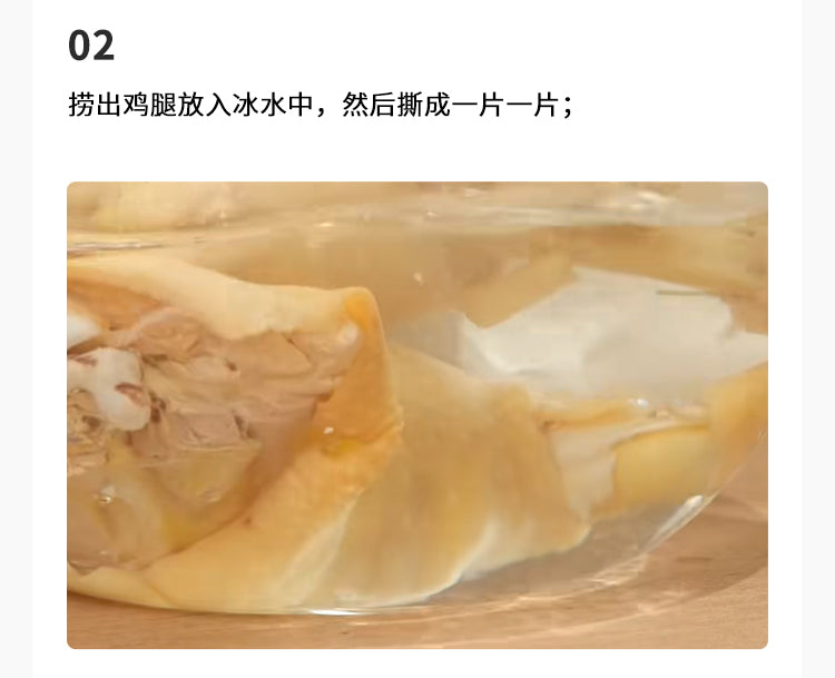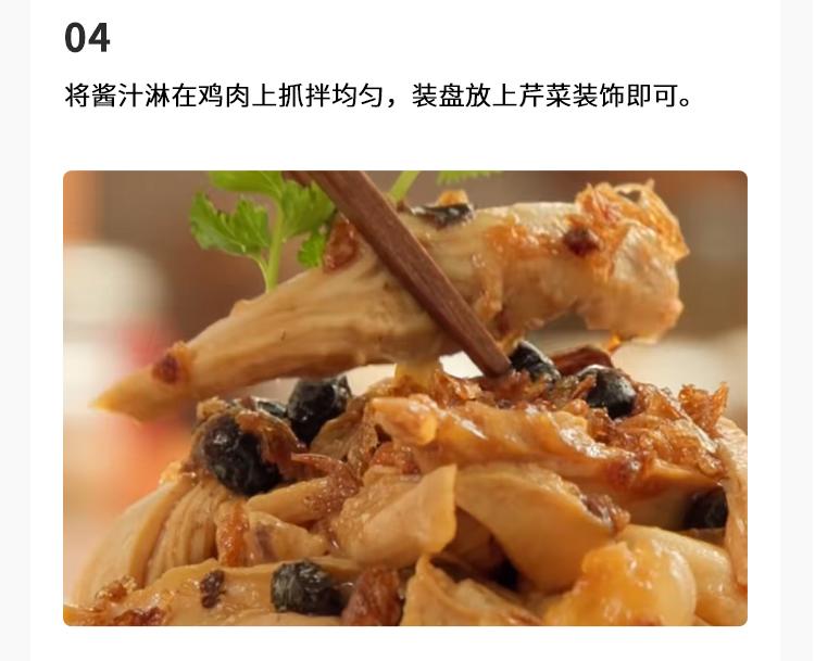 預計烹飪時長:15分鐘 / 食材數量:7種【食譜食材】2個 雞腿1個 蔥結4片 薑片1勺 荳豉1圈 時油(醬油)2勺 蔥油1小撮 芹菜【烹飪步驟】1.雞腿下鍋焯水,放蔥薑去腥,加蓋焯水至熟透,大概幾分鐘;2.撈出雞腿放入冰水中,然後撕成一片一片;3.碗裡放入荳豉,時油(醬油),2勺蔥油,攪拌均勻;4.將醬汁淋在雞肉上抓拌均勻,裝盤放上芹菜裝飾即可。