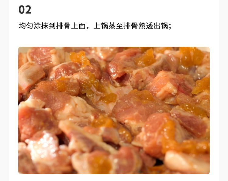 預計烹飪時長:25分鐘 / 食材數量:3種【食譜食材】適量 排骨適量 芹菜碎適量 鹹酸梅【烹飪步驟】1.取成酸梅兩顆去核,切碎;2.均勻塗抹到排骨上面,上鍋蒸至排骨熟透出鍋;3.加入芹菜碎,開始享受美食吧。