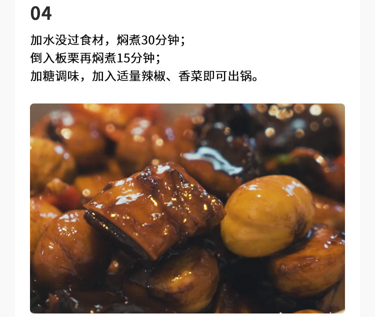 預計烹飪時長:60分鐘 / 食材數量:8種 【食譜食材】500克 牛腩250克 板栗2棵 蔥頭1粒 蒜頭少許 初湯(魚露)少許 白糖少許 胡椒粉少許 時油(醬油)【烹飪步驟】1.鍋中燒水加入牛腩、姜片、蔥節,煮至牛腩斷生並切塊;2.起鍋熱油,倒入板栗翻炒;加入牛肉煎至金黃色;3.倒入料酒增香,下蒜頭、蔥頭,用加入醬油、魚露進行調味;4.加水沒過食材,燜煮30分鐘;倒入板栗再燜煮15分鐘;加糖調味,加入適量辣椒、香菜即可出鍋。